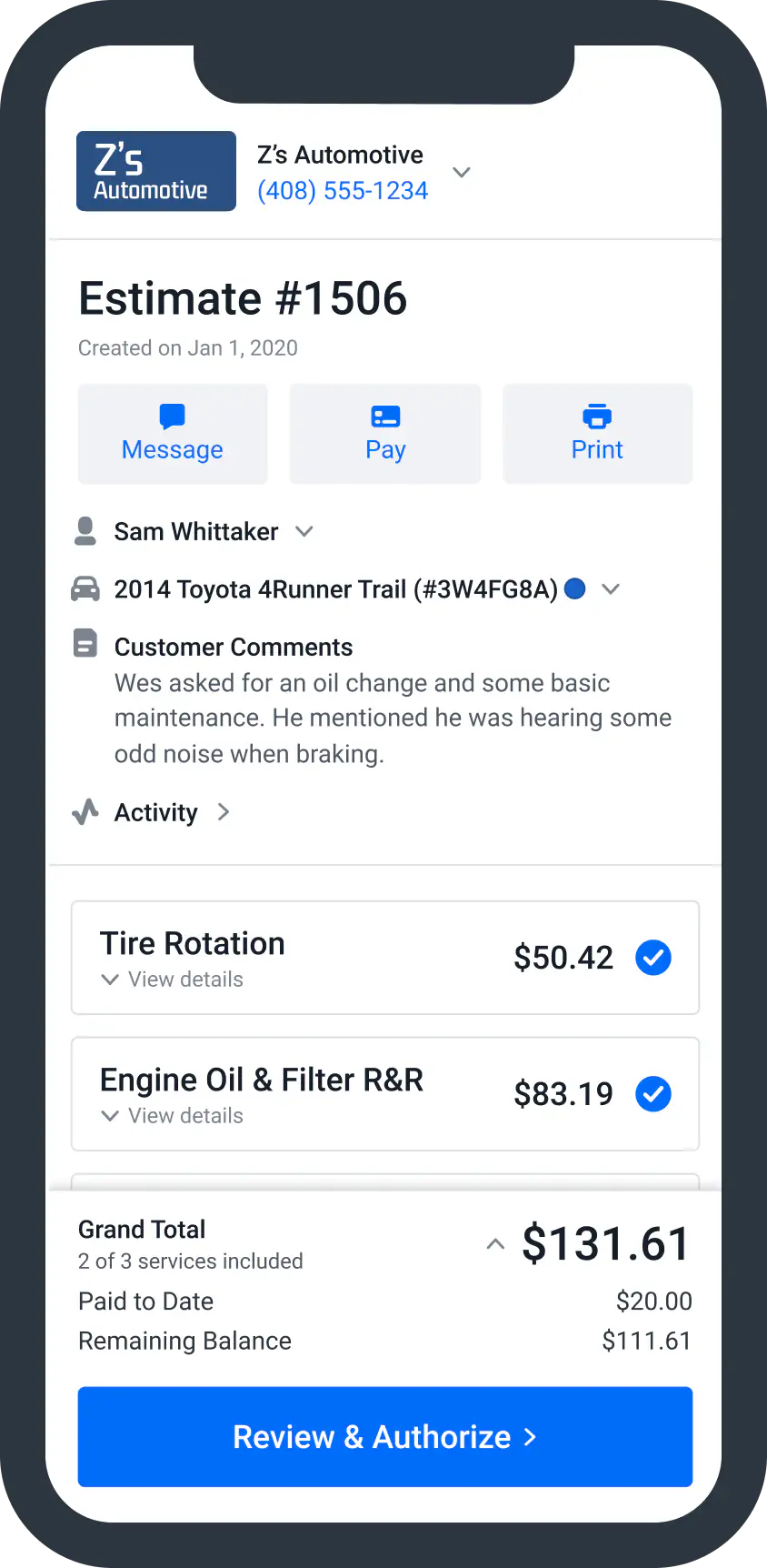Shops are looking to streamline the estimate approval process and provide a better customer experience. When the phone is the primary means of communicating with customers, a car can sit in the shop for hours waiting for the customer to answer their phone. Once the customer does answer, a member of the team must patiently spend time explaining each line item of the estimate, adjust as necessary, and then get verbal approval.