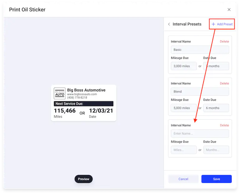 We start you off with three of the most common interval presets and give you the keys to edit them or add as many custom intervals as your shop sees fit.