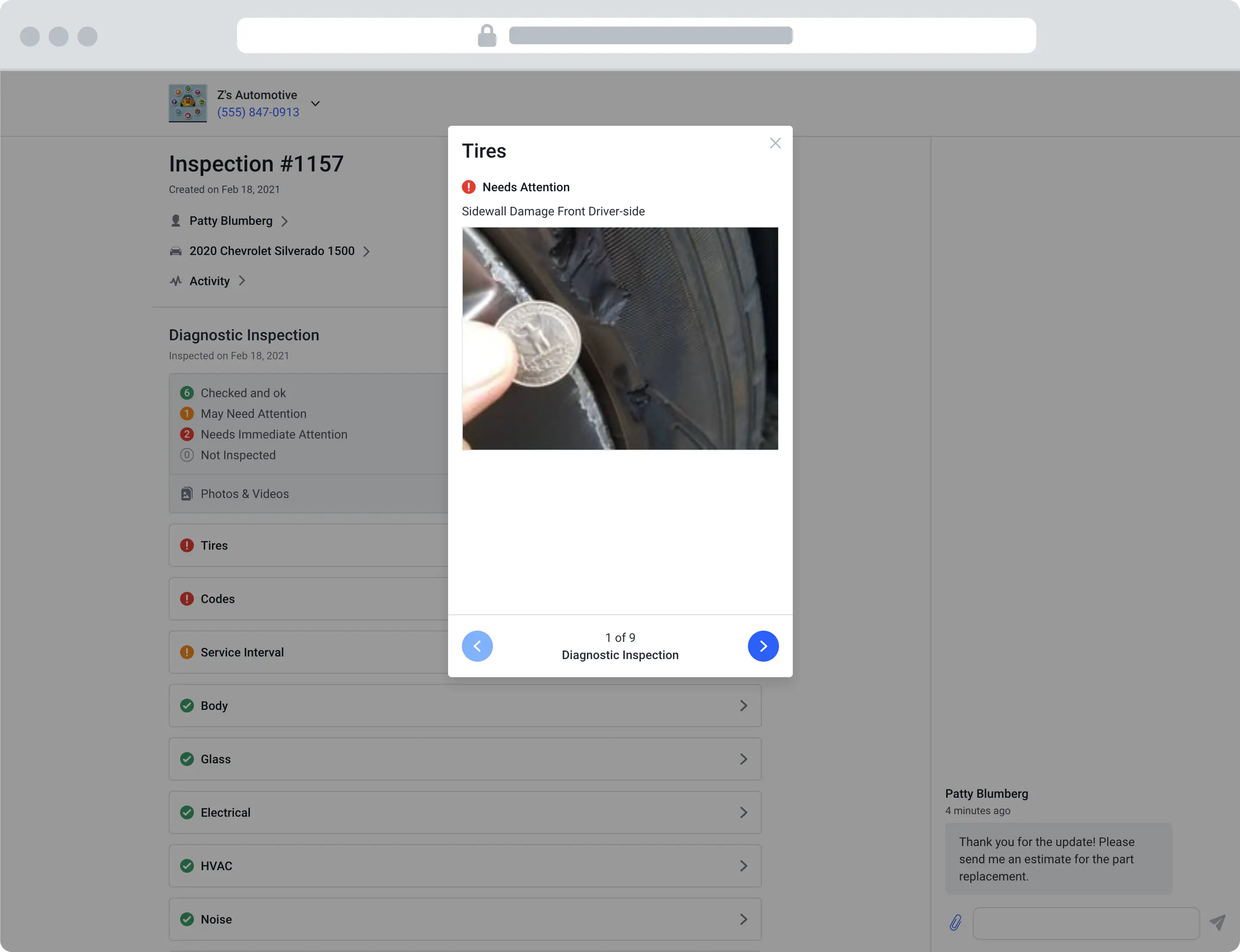 It’s your job to make customers feel comfortable and confident in choosing you to fix their vehicle. Some customers are either naive to the process or leary of getting stuck with a bill for a bunch of unnecessary work, so take your time to explain and educate them on exactly what is going on with their vehicle. One way to do this is through digital vehicle inspections where you provide photos and video that transparently show what needs to be done and builds trust. Be clear on the cost and also whether you feel the are urgent or can be deferred to a later date.