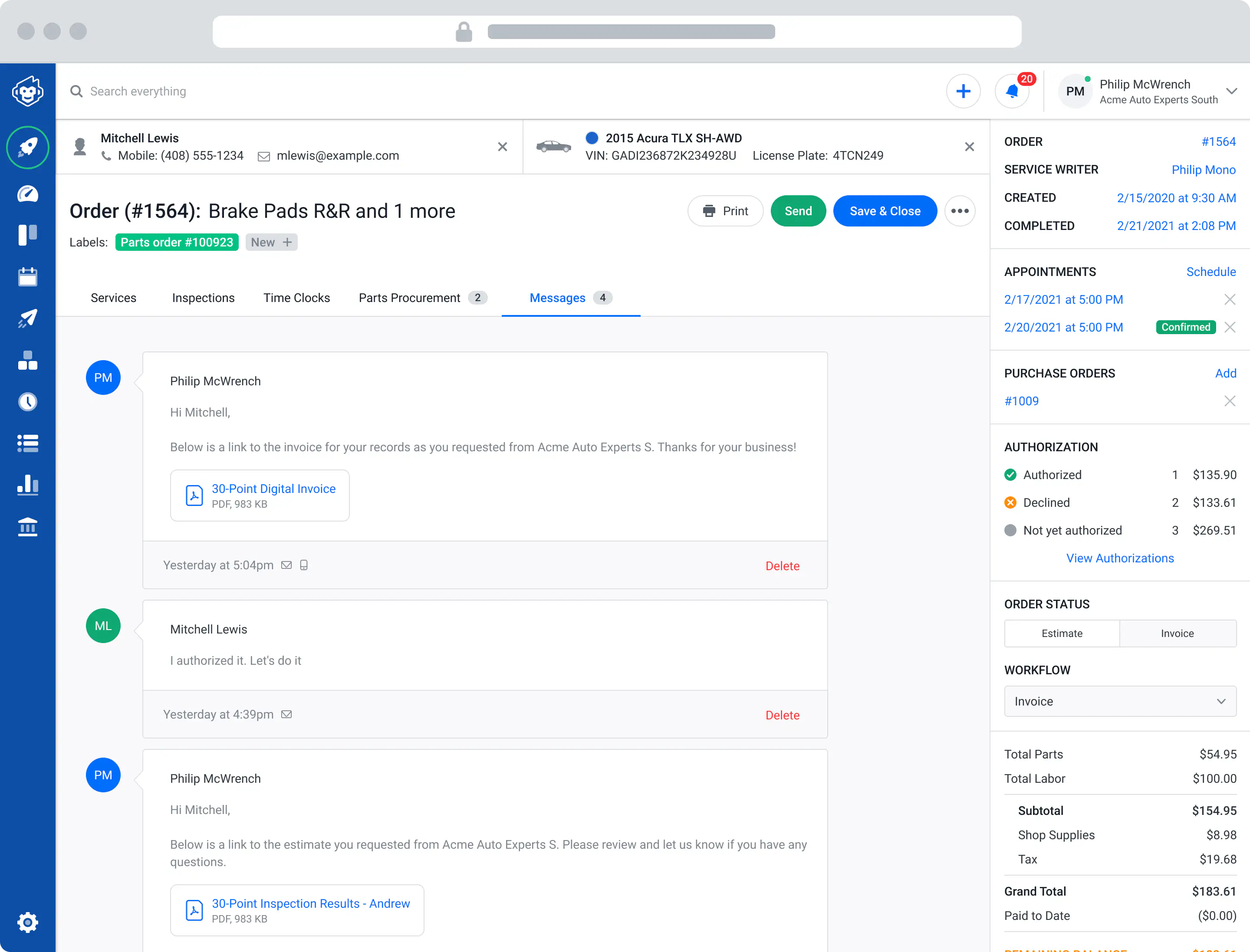 Be proactive in how you communicate with your shop customers. Set realistic appointment drop-off and pick-up times and send them automated appointment reminders. Implement key communication touchpoints into your shop’s workflow so customers never wonder what the status of their vehicle is. The other key piece is to keep a record of all communication. These days, text messaging is what most customers prefer, but keeping customer communication records on your personal mobile phone is not optimal. Instead, any and all communication should be documented under the customer profile and made accessible to anyone on your team with authorized access.